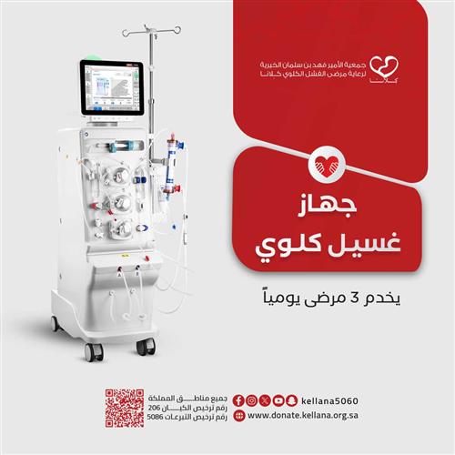 جهاز غسيل كلوي، يخدم 3 مرضى يومياً